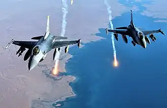 ![]() F-16 Fighting Falcons of the 188th Expeditionary Fighter Squadron over Iraq, 2009 | |