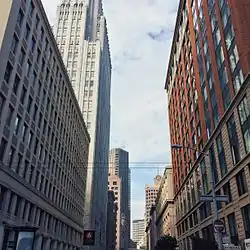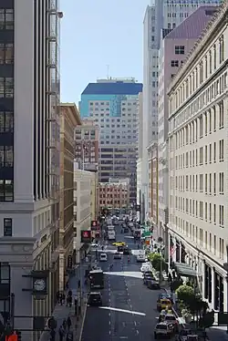![]() New Montgomery Street, seen facing south across its Market Street terminus | |
