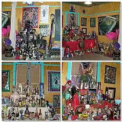 Many contemporary practitioners have their own personal altars, often located in the kitchen or living room.[27] These altars are understood as assisting communication with ancestors,[28] with food and drink being offered to the ancestors at them.[29] Libations may be poured.[30] Music is often a part of rituals.[31]