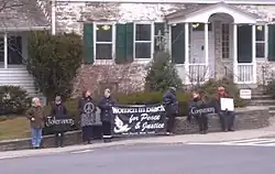 The Women in Black have a small-but-active chapter in New Paltz that has been protesting in front of Elting Memorial Library weekly since November 2001.[9] In 2024, over 200 activists rallied at the library to demonstrate their "outrage" over the arrest of over 100 students at SUNY New Paltz who had created a Gaza solidarity encampment.[10]