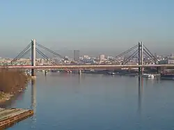 New Railway Bridge (Serbian: Нови железнички мост, romanized: Novi železnički most) is a cable-stayed bridge over the Sava river in Belgrade, the capital of Serbia. Opened in 1979, it was the second railway bridge over the Sava in Belgrade after the Old Railway Bridge in 1884, and fifth in the row of six bridges which span the river in the urban section of the city.