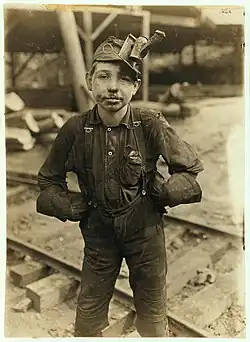 The New River Coalfield is located in northeastern Raleigh County and southern Fayette County, West Virginia. Commercial mining of coal began in the 1870s and thrived into the 20th century. The coal in this field is a low volatile coal, known as "smokeless" coals.[1] The seams of coal that have been mined include Sewell, Fire Creek, and Beckley. This is very high quality bituminous coal rated at approximately 15,000 BTU (16,000 kJ). The New River coalfield is named after the north flowing New River. Over 60 coal towns were once located there, supported by independent commercial districts at Beckley, Oak Hill, Mount Hope, and Fayetteville. By the 21st century many coal camps had partially or completely returned to nature. These company towns were located along Dunloup (Loup) Creek, Laurel Creek, White Oak Creek, lower Piney Creek, and, of course, the New River. The mainline of the Chesapeake and Ohio Railway ran right through the center of this coalfield, with spurs branching off in many directions, and rail yards were maintained at Quinnimont, Raleigh, and Thurmond, WV. The Virginian Railway's main line also passed through the western side of the field as well. Companies such as the New River Company, New River & Pocahontas Consolidated Coal Co., and Mary Frances Coal Co. were the largest operators in the New River Coalfield, but there were many smaller ones as well. These companies recruited native born whites, immigrants from Southern and Eastern Europe, and African Americans from the South to work in their coal mines and railroads. The mines began to close down after World War II and today there are very few active coal mines in the field. The New River Gorge is now the domain of the National Park Service as the New River Gorge National Park and Preserve, and they have done what their budget allows to preserve the coal heritage of the area.