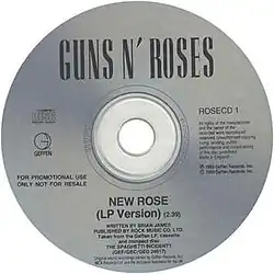 "New Rose" is the first single by the English punk rock[2][3] band the Damned. It was released on 22 October 1976 on Stiff Records, and in 1977 in the Netherlands, Germany and France. It is notable as the first ever single released by a British punk band.[4]