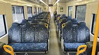 Each set comprises two powered cars with one having a toilet.[2] The first set entered service on 23 November 2006, operating a small number of Newcastle to Telarah services on Thursday and Fridays only.[6] The second set entered service on 8 January 2007 also operating a limited number of services. By September 2007, all seven had entered service.[7] They operate services from Newcastle to Dungog and Scone alongside the Endeavours.