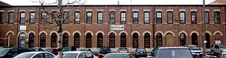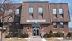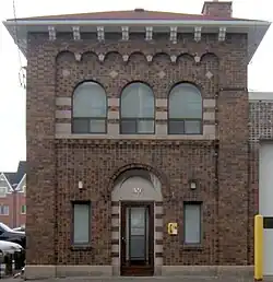 In 1929, the New Toronto fire station was built. Designed in an Italianate style, it was also used as the Town Hall for a time. It is still a fire station today.[13] At the same time, the new mayor William Jackson donated land for a Public Library Building. Jackson would go on to be mayor almost continuously until 1952.[14] In 1930, the Campbell Soup Company Ltd. had arrived in New Toronto[15] commissioning architects Mathers and Holdenby to build an Art Deco factory at 60 Birmingham Street (c. 1931).[16] In 1947 the Fifth Street Public School burned down and was replaced with the new Second Street Public School.[17] The former Fifth St. Public School was then rebuilt to become the Town of New Toronto Town Hall.