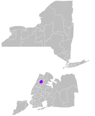 The district overlaps with New York's 14th and 15th congressional districts, and with the 77th, 79th, 82nd, 84th, 85th, and 87th districts of the New York State Assembly.[5]