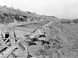 In 1890, the company secured investment capital of $300,000 to complete work on the canal. The general contractor was Denver railroad builder William C. Bradbury, and the company believed the canal would be finished in 1891.[9] By September, 1890, 220 workers were employed, and the company advertised employment for 1000 workers. But progress on the canal continued into 1892, when work stopped because of disagreements between investors; work resumed in 1893.[10][11]