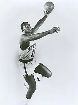 As promised, Lapchick took over in 1947, bringing with him his up-tempo coaching style, which emphasized fast ball movement.[23] Six new players were signed, including guard Carl Braun[22] and Japanese-American guard Wataru Misaka, the first non-Caucasian basketball player in the BAA.[24] Under Lapchick, the Knicks made nine straight playoff appearances beginning in 1947.[25] Braun, who averaged 14.3 points, emerged as the team's star and paired with Dick Holub and Bud Palmer to account for half of the team's offense.[22] Despite this, the Knicks struggled throughout the year, compiling a 26–22 record.[22] Their finish was good enough to place them second in the Eastern Division and secure a playoff match-up against the Baltimore Bullets where they lost the series two games to one.[22] In the 1948 NBA draft, the Knicks selected two future Hall of Fame players in center Dolph Schayes and Harry Gallatin.[26] The Knicks were leery of Schayes' talent, prompting the center to leave to play for the Syracuse Nationals of the struggling National Basketball League.[26] Despite losing Schayes, the team started the year well going 17–8 before they fell into a slump.[27] They ended the year with a seven-game win streak to finish with a 32–28 record and a third-straight playoff appearance.[27] The Knicks defeated the Bullets in a rematch of their previous encounter in 1947, winning the series 2–1.[27] The team however struggled against the Washington Capitols and lost the series 1–2.[27]