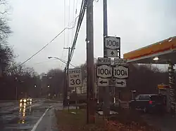 New York State Route 100B (NY 100B) is a 2.88-mile (4.63 km) spur route of NY 100 in Westchester County, New York, in the United States. The route follows Dobbs Ferry Road across the southern part of the town of Greenburgh, connecting NY 9A to NY 119. It does not directly connect to NY 100; however, it intersects NY 100A about 1 mile (1.6 km) west of NY 119. NY 100B was assigned in the late 1930s.