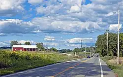 After CR 60, NY 211 turns northeast out of Baileyville and reaches the hamlet of Howells as it crosses into the town of Wallkill. After a large bend to the southeast, the route junctions with CR 18 and begins running southeast along the residential strip northwest of the city of Middletown. Passing Monhagen Lake, NY 211 crosses southeast into the hamlet of Pilgrim Corners, where it junctions with CR 78 and soon enters the city of Middletown. Crossing over a railroad spur, NY 211 enters the city along Monhagen Avenue, a two-lane commercial/residential street in the northwestern section of the city.[3]