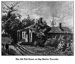 In 1840 the Bull Head Turnpike Company built a private toll road known today as the Sag Harbor Turnpike, which operated successfully until a competing railroad line opened in the 1880s. In 1906 the town of Southampton took control of the now dilapidated road and removed the toll gates.[10] NY 114 was assigned to its current alignment as part of the 1930 renumbering of state highways in New York and is known in part as the Sag Harbor Turnpike.[2][6] The bridge carrying NY 114 between Sag Harbor and North Haven is an arched bridge that serves as a village landmark. In 1999, residents successfully fought state proposals to replace it with a girder bridge. Instead, the bridge was replaced with a new, wider bridge with ornamental lamps that closely resembles the original and is in the same location.[11]