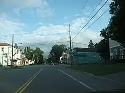 The route has also been realigned in areas to bypass smaller communities along the highway. One such location is in the vicinity of the village of Greene, where NY 12 initially followed Chenango Street through the village.[31] The current bypass around the western edge of the village was built in the late 1970s and completed by 1981.[32][33]
