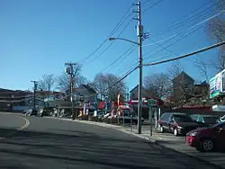 Inside the village limits, maintenance of NY 120A shifts from the state to Westchester County, which inventories the route as CR 112.[5] Continuing on, the road narrows to two lanes ahead of Port Chester's central business district, where NY 120A passes the Port Chester Public Library and the village's post office ahead of a junction with Pearl Street three blocks west of U.S. Route 1 and two blocks west of the Metro-North Railroad. Here, NY 120A turns off Westchester Avenue and onto North Pearl Street,[4] becoming a village-maintained route in the process.[5] The route's northeastward run on North Pearl Street is brief, however, as NY 120A turns northwest onto King Street after just two blocks.[4]