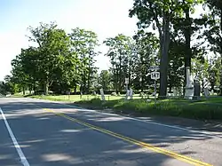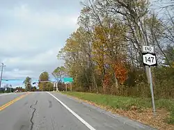 After crossing into Saratoga County, NY 147 intersects with CR 55 (North Road) in the town of Charlton. The backdrop becomes rural, entering the hamlet of West Charlton, a small residential part of Charlton. North of West Charlton, NY 147 intersects with NY 67 (Amsterdam Road) then crosses into the town of Galway. The road remains rural, passing through the village of Galway, crossing CR 45 (West Street / East Street) in the middle of Galway. NY 147 bends to the northeast out of downtown and continues northward as a two-lane rural highway through Galway, bending northwestward into the hamlet of Kimball Corners. In Kimball Corners, NY 147 intersects with NY 29, which is where the NY 147 designation terminates. The right-of-way continues north as Dean Lung Road.[3]