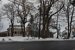 NY 167 begins at an intersection with US 20 (West Main Street) near the northern tip of Canadarago Lake in the village of Richfield Springs. The route proceeds north as a two-lane highway along Church Street, passing through the village's residential northern portion before leaving Richfield Springs and crossing the Otsego–Herkimer county line just a half-mile (0.8 km) from the junction with US 20. The residential surroundings follow NY 167 into the town of Warren; however, they give way to more open, undeveloped areas as the route intersects Millstone Road (County Route 78 or CR 78, an unsigned number) about a half-mile (0.8 km) from the county line. From Millstone Road, the route winds northeast through Warren, traveling through increasingly rural areas as it serves the hamlet of Cullen and intersects Cullen and Hogsback roads (CR 183) in the center of the small community.[3]