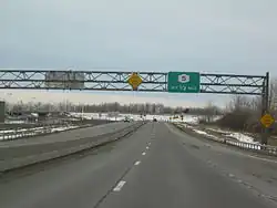 The Mile Strip Expressway, a 1-mile (1.6 km) highway extending from NY 5 to US 62, was constructed in the mid-1960s and designated as NY 179 by 1968.[2][3] A short continuation of the expressway east of US 62 providing direct access to New York State Thruway exit 56 was opened to traffic as an extension of NY 179 at some point in the late 1970s or early 1980s.[5][6] The junction between the expressway and Milestrip Road was initially a four-way intersection, with Milestrip Road passing east–west through the intersection and NY 179 entering from the south to connect to Thruway exit 56 to the north.[7]