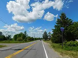 The Nicholville–Lawrenceville segment of NY 2A was concurrent with NY 56, another route assigned in the mid-1920s that extended from Massena in the northwest to Meacham Lake in the southeast via Winthrop and Saint Regis Falls.[10][11] When NY 2 was redesignated as US 11 in 1927, the NY 2A designation was eliminated and replaced with a realigned NY 56 from Potsdam to Nicholville.[12] The Nicholville–Lawrenceville roadway was left unnumbered until the 1930 renumbering of state highways in New York when it was designated as NY 11B.[13] The designation was extended west to Potsdam by the following year.[14] NY 11B was rerouted c. 1938 to continue east from Nicholville to Malone while its former routing north of Nicholville was designated as NY 195.[2][3]