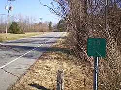 Reference markers for NY 215 are still intact along Redman Road. The above marker is the last on former NY 215 northbound