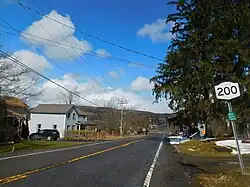 In the 1930 renumbering of state highways in New York, the south half of the loop road became part of NY 221, a new route extending from NY 38 at Harford Mills to US 11 in the village of Marathon.[2][6] NY 221 was extended east to its current eastern terminus in Willet by the following year.[7] The portion of the route between the Harford loop road and Willet utilized a highway added to the state highway system sometime after 1926.[8] NY 221 was rerouted to follow its current alignment to the hamlet of Harford in the mid-1930s,[6][9] and its former routing to Harford Mills was redesignated as NY 200 in the 1940s.[10][11]