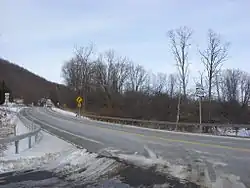 Continuing through Tyrone, NY 226 bends northeast at a fork with Altay Road. NY 226 continues this northeastern progression from Altay, crossing Pre-Emption Road at-grade. By this point, the route has entered the town of Reading as a two-lane rural roadway. After a bend to the north, CR 27 terminates at NY 226, which continues north a short distance before terminating itself at an intersection with NY 14A near the Yates County line.[3]