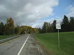 New York State Route 228 (NY 228) is a state highway in Schuyler County, New York, in the United States. It runs for 12.47 miles (20.07 km) in a northeast to southwest direction from an intersection with NY 224 in the village of Odessa to a junction with NY 227 in the hamlet of Perry City within the town of Hector. NY 228 has a short overlap with NY 79 in the Hector community of Mecklenburg. The route was assigned as part of the 1930 renumbering of state highways in New York; however, it initially ended at NY 79 in Mecklenburg, from where NY 79 went north to Perry City. NY 79 was realigned to head west from Mecklenburg in the early 1960s, at which time the NY 228 designation was extended northward over NY 79's former routing.
