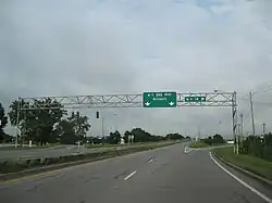 NY 252A (4.40 miles or 7.08 kilometres) was an alternate route of NY 252 along Paul Road in the town of Chili. It extended from the eastern terminus of the overlap between NY 33A and NY 386 in the hamlet of Chili Center to NY 383 in the vicinity of the Greater Rochester International Airport. Despite its designation, NY 252A never connected to NY 252.[1] The route existed from the late 1950s[8][9] to 2009.[29] Its former alignment is now maintained by Monroe County as part of CR 168.[30]
