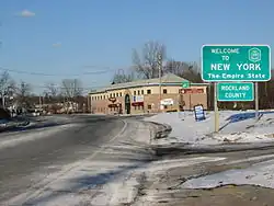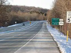 New York State Route 304 (NY 304), also known as "Rockland County Clerk Paul Piperato Memorial Highway",[3] as well as Pearl Street for its first half a mile and Main Street for other parts, is a north–south state highway located in central Rockland County, New York, in the United States. The 10.38-mile (16.70 km) route begins at the New Jersey–New York border in Pearl River and ends at an intersection with U.S. Route 9W (US 9W) in the community of Congers. The route is a main route through Rockland County, intersecting NY 59 and indirectly connecting to the New York State Thruway and the Palisades Interstate Parkway (PIP) in Nanuet. NY 304 has three distinct sections: a freeway that extends from Pearl River to Nanuet, a surface section between Nanuet and New City, and an expressway linking New City to Haverstraw.