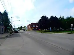 In South Dayton, NY 322 is known as Pine Street as it proceeds through the village. The amount of development along the route rises as it approaches the center of the village at Main Street. The route continues, traveling by four blocks of homes and businesses before curving eastward and entering another area dominated by open fields. It exits the village limits shortly afterwards. East of South Dayton, NY 322 is known as Dexter Corners Road as it heads through a rural area of the town of Dayton. NY 322 continues to the community of Dexter Corners, where it ends at an intersection with US 62.[4]