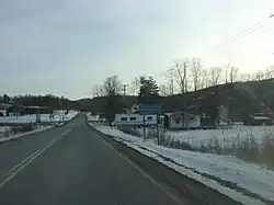 Opponents in Brooktondale to the construction felt the removal of trees would ruin the village. Feeling that the village of Brooktondale was not likely to grow in population as a result of this project, they questioned its purpose. Ruining the scenic narrative of the area would be a waste of taxpayer dollars, since the road just ends at two dirt roads in Guideboard Corners.[12] Despite the opposition, the state met with Caroline town officials and they noted that about 20 people were opposed to the project while a petition of 547 people supporting the job existed.[13] In early July 1962, the state gave the go-ahead for the project to begin, but that the job would begin as early as 1963.[11]