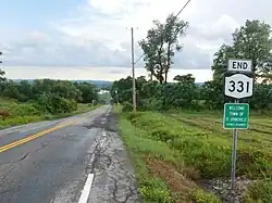New York State Route 331 (NY 331) is a north–south state highway located in the Mohawk Valley of New York in the United States. The route extends for 3.10 miles (4.99 km) from an intersection with Kennedy Road in the Montgomery County town of St. Johnsville to a junction with NY 29 in the Fulton County town of Oppenheim. Heading northbound, state maintenance of NY 331 begins at the Montgomery–Fulton county line as the Montgomery County section of the route is county-maintained as part of County Route 57 (CR 57). NY 331 was assigned as part of the 1930 renumbering of state highways in New York.