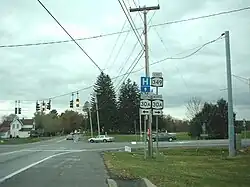 New York State Route 349 (NY 349) is an east–west state highway in Fulton County, New York, in the United States. The highway extends for 3.58 miles (5.76 km) across largely rural terrain from an intersection with NY 30A in the town of Johnstown to a junction with NY 30 in the town of Mayfield. The westernmost section of the route is known as East State Street Extension. NY 349 was assigned c. 1931 to the portion of its alignment between County Route 154 (CR 154; then NY 148) and NY 30. It was extended west to its present terminus in the mid-1950s after NY 148 was rerouted onto an arterial highway between Gloversville and Mayfield.