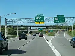 | 3.57 | 5.75 | 24 | Signed as exits 24A (east) and 24B (west) northbound; former US 104 | ||