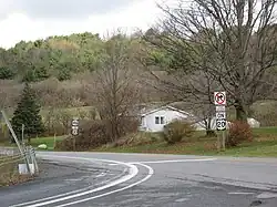 Paralleling the Mohawk River from a distance, NY 46 soon reaches a junction with the northern terminus of NY 274.[4] At NY 274, NY 46 turns northward near the abandoned Black River Canal[6] and crosses through the hamlet of Frenchville before reaching North Western. Running between the river and Buck Hill, NY 46 begins a northwest route through the town of Western, but changing directions at the hamlet of Hillside, where a connector to Western Hill Road (CR 76) is provided. Now running northward, NY 46 returns to the rural settings north of North Western and soon reaches the rural hamlet of Dunn Brook. Just north of Dunn Brook, the route crosses the town line from Western into the town of Ava. The stretch of NY 46 in Ava is very short and after one curve, the route crosses into the town of Boonville.[4]