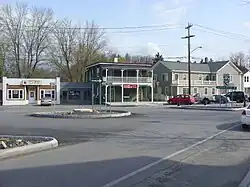 Passing the station, NY 66 also has a junction with the terminus of NY 295 (Railroad Street). Now known as Main Street, the route remains commercial through the northern reaches of the village, turning northwest at a roundabout with Austerlitz Street, River Street and Kinderhook Street. Continuing onto Center Street, NY 66 winds across the northern reaches of the village before crossing into the town of Chatham, where it drops the Center Street moniker. Through the town of Chatham, the route returns to its rural nature, passing a junction with a former alignment of NY 66 that dead-ends in the nearby woods. Turning northwest again, NY 66 enters the hamlet of Old Chatham, where it reaches a junction with CR 13 before crossing Kinderhook Creek.[4]