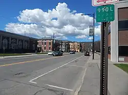NY 990L begins at an intersection with NY 12 (Broad Street) and West Main Street (former NY 319) in the downtown district of the city of Norwich. The route heads east along East Main Street, passing through the eastern portion of the city. NY 990L exits the city and enters the surrounding town of Norwich upon crossing the Chenango River. On the eastern riverbank, NY 990L intersects the lengthy County Route 32 (CR 32, named East River Road). The CR 32 designation ends here, giving way to the state-maintained NY 990L as the latter turns north onto East River Road.[3][4]
