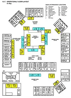 The New York TRACON is divided into five areas. Sectors, along with their frequencies and radio sites, are given below.[2][1]