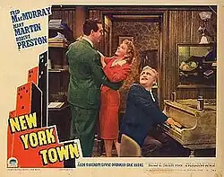 New York Town is a 1941 American romantic comedy film directed by Charles Vidor and starring Fred MacMurray, Mary Martin, Akim Tamiroff and Robert Preston.[1] It was produced and distributed by Paramount Pictures. The film was written by Lewis Meltzer and an uncredited Preston Sturges based on a story by Jo Swerling.