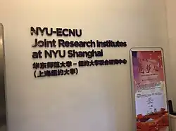 New York University Shanghai (NYU Shanghai; legal name registered as Shanghai New York University)[1] is China's first Sino-US research university and the third degree-granting campus of New York University (NYU). It was established in 2012 under a partnership between East China Normal University (ECNU) and NYU with the support from the Shanghai Municipal People's Government. It was the first Sino-foreign joint university to receive independent legal entity accreditation from the Ministry of Education of China.[2] Classes are in English.[3] Upon graduation, undergraduate students will receive bachelor's degrees from both NYU Shanghai and NYU.[4] Students can study abroad at one of New York University's 13 global academic centers and 2 degree-granting campuses.[5]