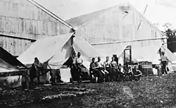 The school was able to expand considerably in 1916, and built hangars by the beach for launching flying boats. The Walsh brothers and their sisters lived in the 'captain's house' at the eastern end of the bay, and students lived in tents and later wooden huts.[1]