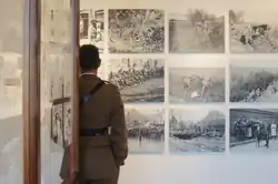 The museum tells the story of the capture of Le Quesnoy and New Zealand's involvement in liberating the town through immersive sensory experiences.[14] It also delves into New Zealanders wider involvement in serving in the Western front in World War I.[15] As well as displaying the realities of life for Le Quesnoy civilians during German occupation.[5] A large-scale and hyper realistic figure of a solder is exhibited which was created by New Zealand special effects company, Wētā Workshop.[16]