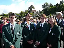 The development of a New Zealand identity and national character, separate from the British colonial identity, is most often linked with the period surrounding the First World War, which gave rise to the concept of the Anzac spirit.[65] However, cultural links between New Zealand and Great Britain are maintained by a common language, sustained immigration from the UK, and the fact that many young New Zealanders spend time in Britain on "overseas experience", known as "OE".[66] New Zealanders also identify closely with Australians, as a result of the two nations' shared historical, cultural and geographic characteristics.[67]