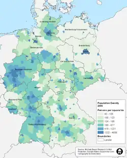 After the fall of the Berlin Wall, the former East German states experienced high rates of depopulation until around 2008.[1] About 2,000 schools closed between 1989 and 2008, because of a demographic shift to a lower number of children.[2] In 2006, the fertility rate in the new states (1.30) approached those in the old states (1.34) and in 2016 it was higher than in the old states (1.64 vs. 1.60 in the old states).[3][4] In 2019, the new states had exactly the same fertility rate as the old states (both 1.56).[5]