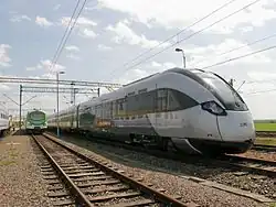 Subsequent tenders for Szybka Kolej Miejska in Warsaw required low-floor units, disqualifying the 19WE/20WE.[16][17] The first of these tenders, for 13 EMUs, was won by Pesa, which proposed the Elf model.[18] The next tender, for 6 EMUs, was again won by Newag, but due to the low-floor requirement, Newag proposed a new type, the 35WE, later named Impuls.[17] The 19WE served as the basis for the new design, with both trains sharing some common features.[19]