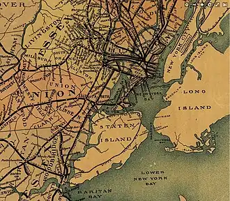 ![]() Newark-area map of New Jersey railroads (1887) | |