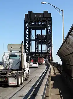 After crossing the Hackensack River on the Lincoln Highway Hackensack River Bridge the road traverses Kearny Point, the southern tip of New Barbadoes Neck where the Hackensack and Passaic River meet. It ran parallel to the Morris Canal. It crosses the Lincoln Highway Passaic River Bridge. This section was part the transcontinental Lincoln Highway and retains that name.[5]