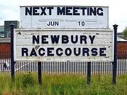 Newbury Racecourse railway station serves the East Fields area of the town of Newbury, Berkshire, England, and the adjacent Newbury Racecourse. It is 52 miles 31 chains (52.39 miles, 84.31 km) measured from London Paddington. It was opened on 26 September 1905.