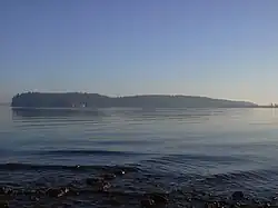 Newcastle Island looking towards the Georgia Strait/Salish sea, with lower mainland coastal mountains in the background -