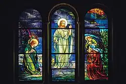 The uptown campus of Tulane University is home to several one-of-a-kind stained-glass windows designed by Louis Comfort Tiffany. Newcomb College founder Josephine Louise Newcomb and her confidant Frank Walter Callender commissioned the majority of these works between 1894 and 1896 for a chapel at Newcomb's Washington Avenue campus in New Orleans' Garden District. In the decades following Newcomb's 1918 relocation to the Tulane Broadway campus, the two stained-glass triptychs were installed in the Woodward Way breezeway fronting the museum’s interior façade. The school's other Tiffany windows are located in the Myra Clare Rogers Memorial Chapel and in Tilton Memorial Hall.