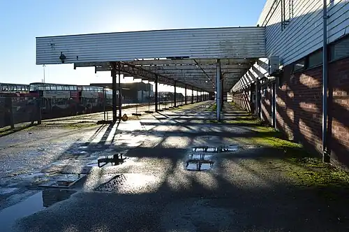 The station was closed to the public in August 2006, due to safety concerns over the condition of the roof canopy, which was later removed.[7][16] Trains continued to run along the line with a single evening service, stopping at the station platform and reversing back to Newhaven Harbour, but impossible for passengers to access the train.[7][a]