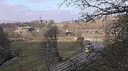 Newhey parish church, dedicated to St. Thomas, was built in 1876 to serve the new Anglican parish of Newhey.[8] Its patron is the Bishop of Manchester.[9] The church was badly damaged by arson on 21 December 2007.[10]